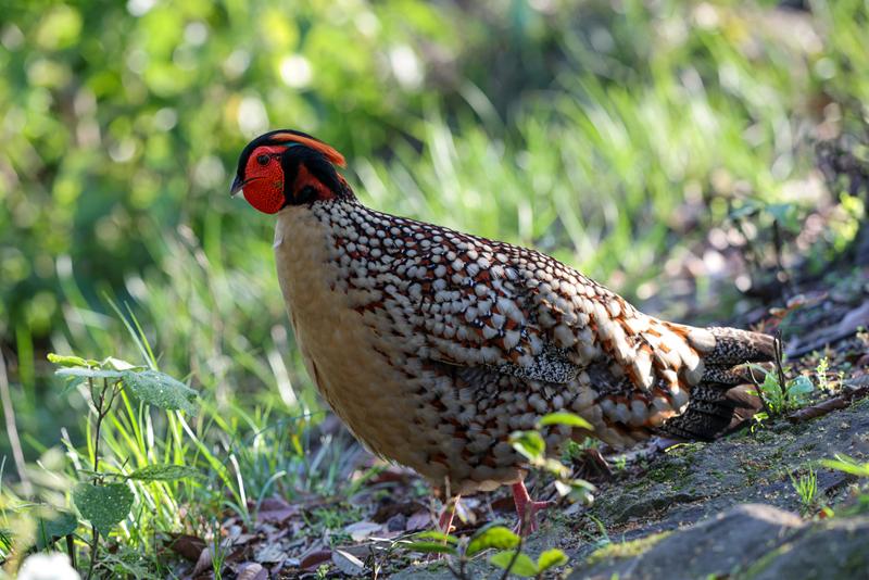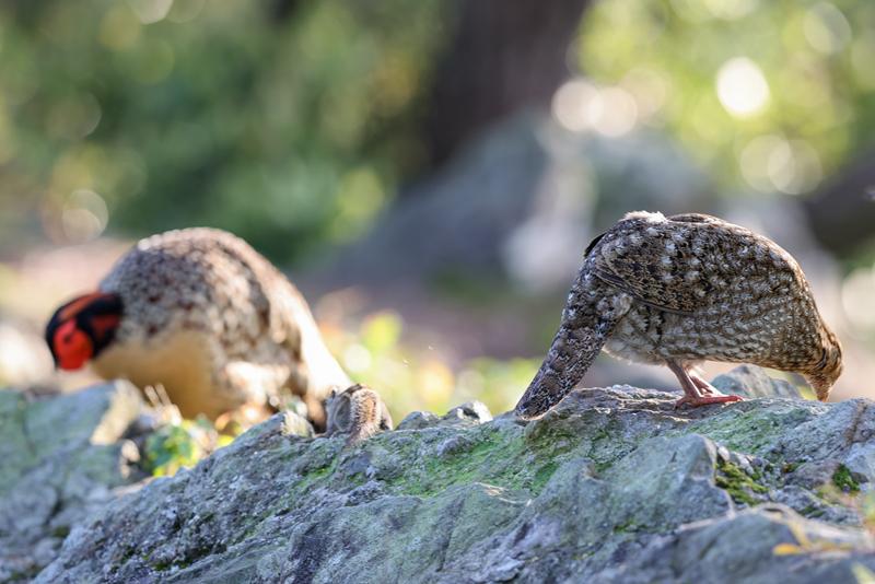 4月20日,有“鸟中大熊猫”之称的黄腹角雉在建瓯市小桥镇际下村山林间嬉戏觅食。