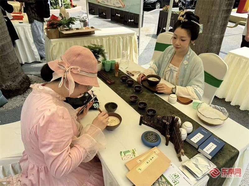 舞蹈《闽韵茶香》 活动现场掌声不断:福建省图书馆与榕城海关举行“书香国门”共建签约仪式,双方将在阅读空间打造、文化资源共享等方面深化合作,进一步拓宽全民阅读覆盖边界。集体朗诵《寻梦山海 绘写华章》深情激昂,情景朗诵剧《穿越千年的书简》沉浸式串联古今文脉,第八届福建省“读中华经典 颂时代华章”诵读比赛、第四届“阅向未来”青少年演讲比赛同步启动,点燃全民阅读热情。 雅集互动趣味足 文化惠民暖人心 启动仪式后,“茶润八闽・书香沁心”茶香雅集与茶文化专题讲座同步开展,成为现场最具人气的板块。雅集区设置书香服务与茶文化体验两大市集,市民可免费办理借阅证、体验新书速借、微印茶香、百福拓印等服务,还能参与闽茶品鉴、盲品猜茶、茶香手作等互动,在赏茶、品书、动手体验中感受闽式生活美学。