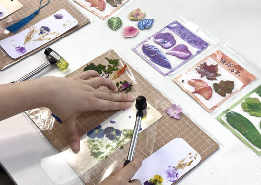 活动以“阅读+非遗”为亮点,将传统植物拓印技艺与读书日主题巧妙融合。在创意手作环节,青年人才们在巾帼志愿者包老师指导下,将新鲜叶片、花瓣摆放在书签上,用锤子轻轻敲打,让植物的脉络与色彩永久定格在方寸之间。这种源于民间的古老技艺,让大家在指尖创作中感受自然之美与非遗魅力。