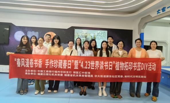 东南网4月23日讯 为深化新时代“堡垒工程”,在第31个“世界读书日”来临之际,为营造浓厚的书香氛围,4月23日上午,华大街道屏东社区党委、新时代文明实践站携手福建日报社机关党委、福建省机关事务管理局及中国工商银行福州华林支行在屏东·幸福里开展“春风漫卷书香 手作珍藏春日”暨“4.23世界读书日”植物拓印书签DIY活动。本次活动由鼓楼区新时代文明实践中心、鼓楼区委社会工作部、鼓楼区委文明办主办,华大街道新时代文明实践所承办,博医汇中医馆、国网福建信通公司协办。