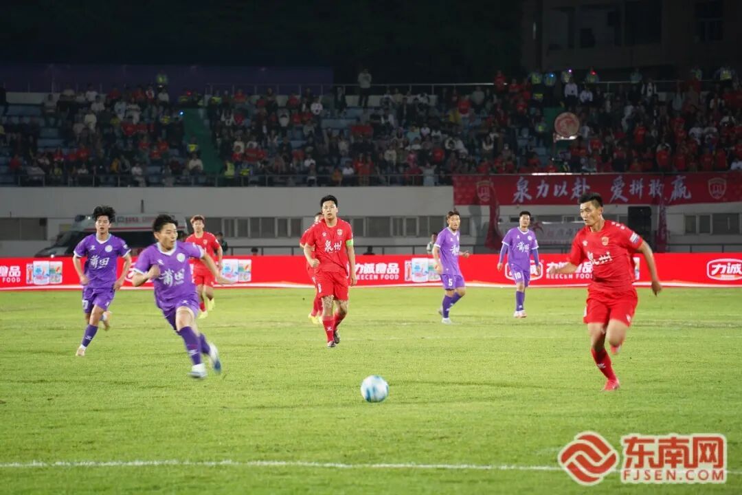 表演落幕,战幕拉开 泉州队客场作战,沉稳坚定 秉持爱拼敢赢的信念 防守坚韧、反击犀利 在一次次传递与奔跑中掌控节奏