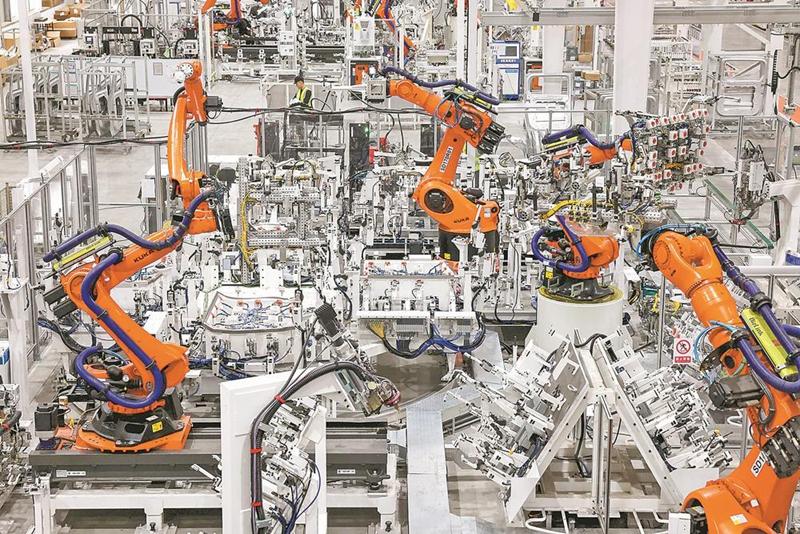 近日,在位于闽侯县的福州荻原泰山友模具冲压有限公司生产车间里,机器人正在赶制汽车车身钣金件产品。近年来,闽侯县加速推动汽车制造企业进行“智改数转”,推动产业集群提质扩容。去年,闽侯青口汽车工业园区工业产值突破1000亿元。