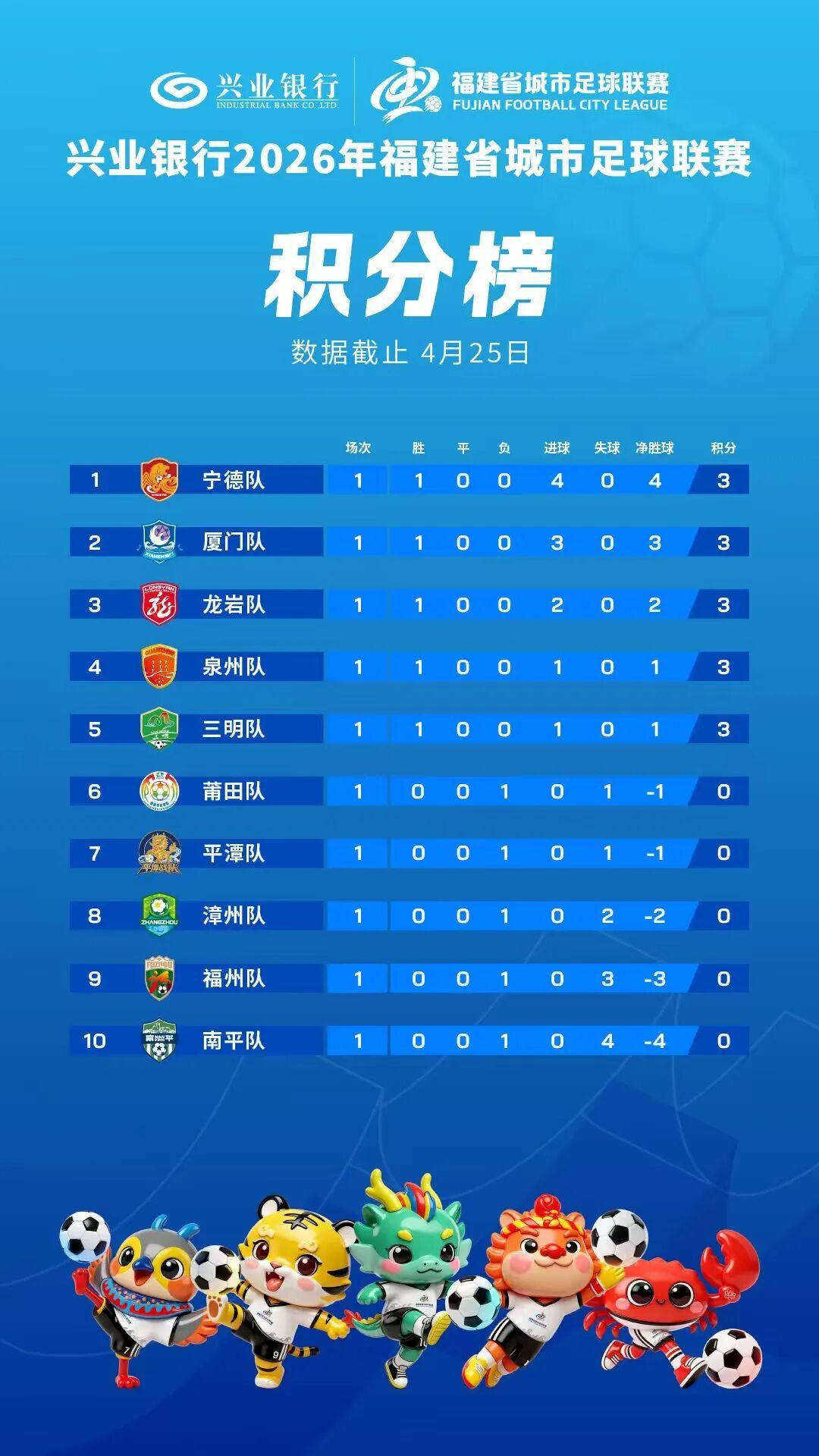 2026年“闽超”积分榜出炉
