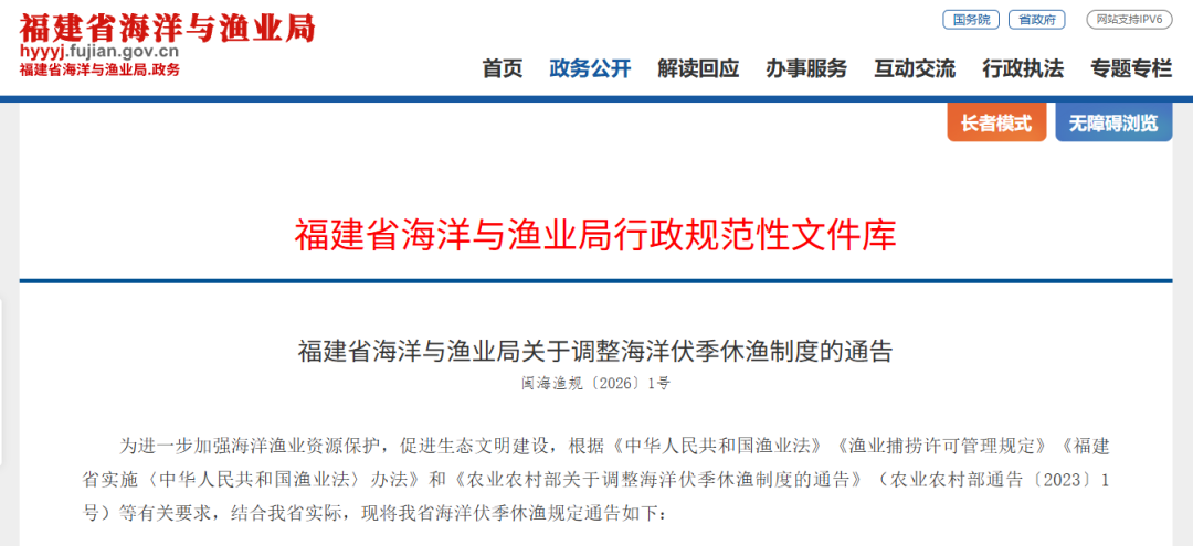 与此前实施的海洋伏季休渔通告中的伏休要求相比,此次《通告》主要变化在哪几个方面呢? 一是进一步明确因特殊原因确需省内异地休渔的,或渔船确需省内异地维修的,应当由船籍港地和靠泊港地县级渔业行政主管部门书面同意,逐级报省海洋与渔业局备案。 二是明确对自愿休渔的钓具船中途确需结束休渔出海作业的,应当向县级渔业主管部门书面申请后,逐级报省海洋与渔业局备案,不再享受相关渔业政策补助。 三是加强为养殖业服务的活鱼运输船监管。 四是严格伏休期间全链条监管,在我省管辖海域内布设禁渔期禁止作业网具的,应当在5月1日12时前自行拆除、清理完毕;逾期未完成的,将依法予以处置,并追究相应法律责任。伏休期间所有休渔渔船不得携带渔具出海。同时,根据新修订《渔业法》,任何单位和个人不得为休渔渔船提供任何服务,且不得擅自处置非法渔获物。 五是进一步明确除变更为休渔时间一致或更长的作业外,伏休期间不得变更作业类型、作业方式。 一起来看《通告》相关解读 ↓↓↓