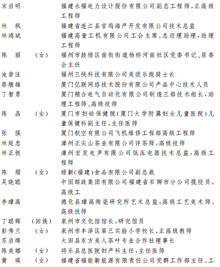 全国五一劳动奖章(28个) (福建部分)