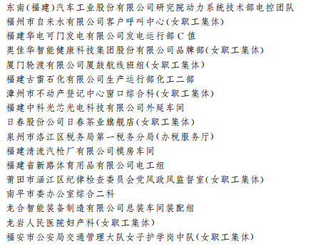 全国工人先锋号(21个) (福建部分)