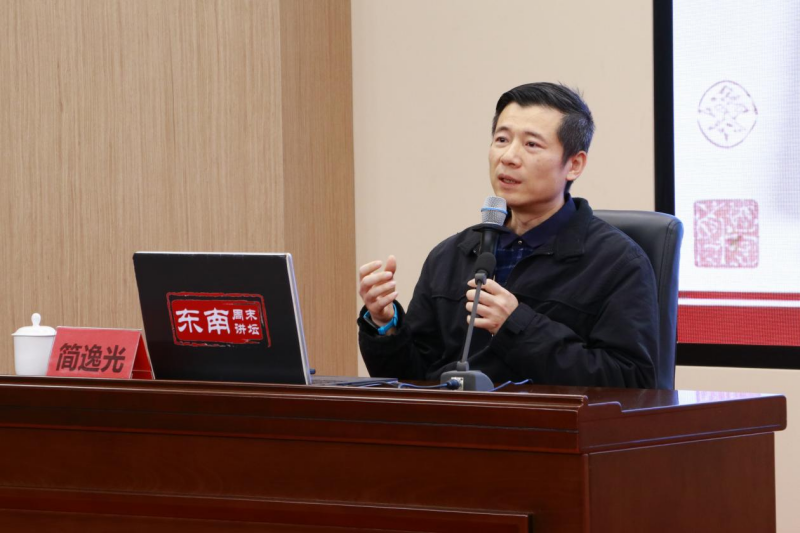 东南网4月28日讯(本网记者 郑琦)在全国首个“全民阅读活动周”期间,4月25日上午,“东南周末讲坛”邀请福建师范大学文学院副教授、文学博士简逸光做客福建省图书馆,带来专题讲座“重探‘近思录,四子之阶梯’”。简逸光结合史料文本回溯宋明理学传承脉络,系统梳理朱熹辞世后,门下核心弟子围绕其有关语录而产生的不同见解、分歧与争辩,带领广大读者在这场学术论争中,感受思辨乐趣与中华优秀传统文化的深厚底蕴。