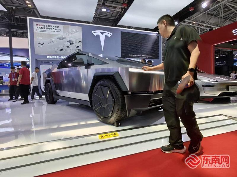 特斯拉带来了赛博越野旅行车。 据介绍,特斯拉将旗下电动汽车定义为“四个轮子的机器人”,配备摄像头与“AI 4硬件”作为“超级大脑”,能够像人类一样用“眼睛”观察路况,并通过学习、思考与判断,主动避免碰撞,从容应对复杂路况。 “这辆车外形很科幻,智能化程度很高,让我对未来出行充满期待。”汽车爱好者林先生在展台前驻足许久,对智能汽车的安全与操控性能赞不绝口。
