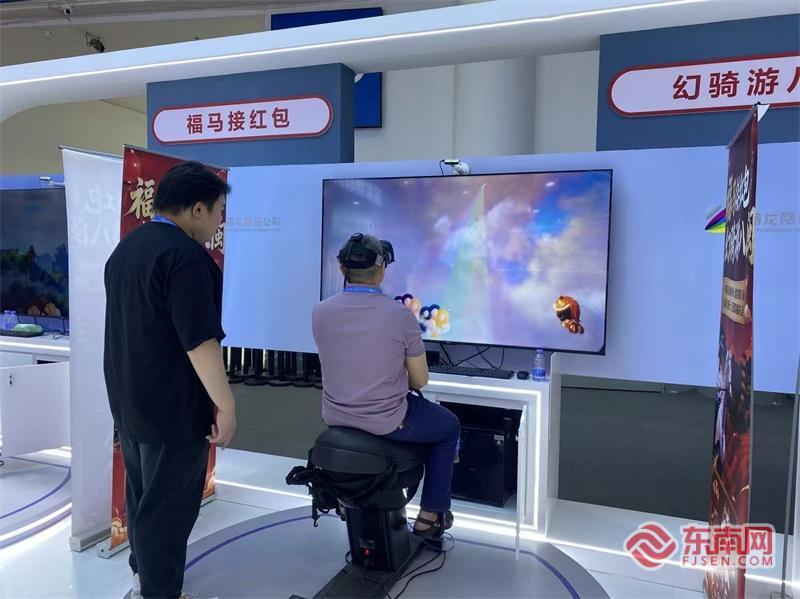 观众体验VR沉浸式项目。 现场“福马接红包 幻骑游八闽”VR沉浸式体验项目吸引了不少观众。据工作人员介绍,项目融合高精度无人机扫描3D建模、虚幻引擎、空间定位感官反馈及数字人等前沿技术,体验者佩戴高清VR设备跨上智能马鞍即可“骑马”幻游福建,纵览八闽名胜,并在途中进行趣味接红包。“几分钟就逛遍了福建好风光,画面很逼真,有身临其境的感觉。”刚摘下VR设备的李先生兴奋地分享感受。