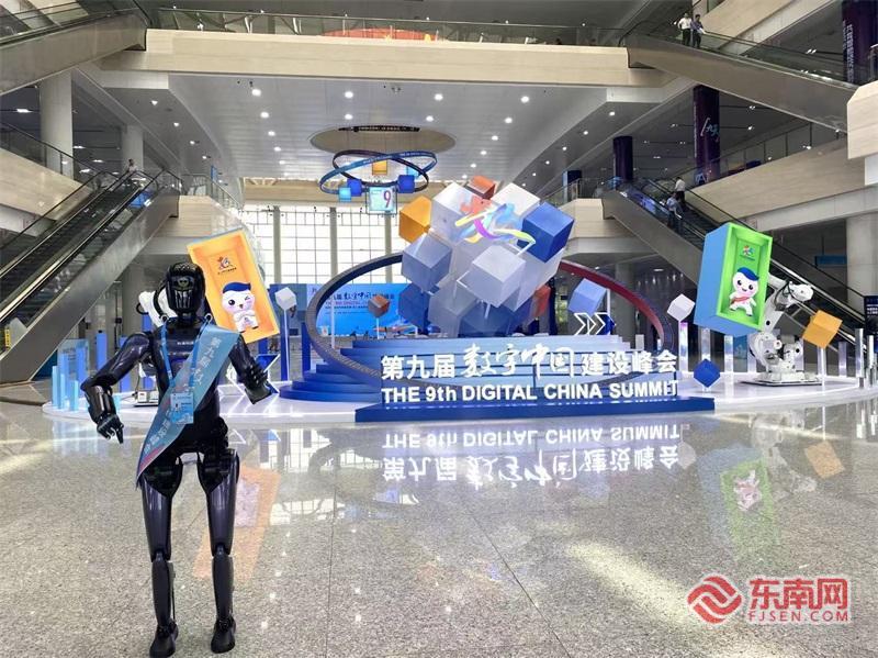 第九届数字中国建设峰会现场体验区今日正式开放。 东南网4月28日报道(记者 卢金福 林夏悦 翁晗 陈楠 文/图)第九届数字中国建设峰会现场体验区今日正式开放。体验区汇聚超400家参展单位(企业),企业占比超75%,集中展示超6000项技术、产品及项目,首展率约65%,全方位呈现数字技术创新成果。 机器人组团“上岗” 智慧服务点亮全场 具身智能机器人成为本届峰会最亮眼的风景线。在海峡国际会展中心序厅,具福科技机器人志愿者灵活穿梭,主动向观众问好、提供引导服务,拟人化动作流畅自然,尽显前沿科技魅力。