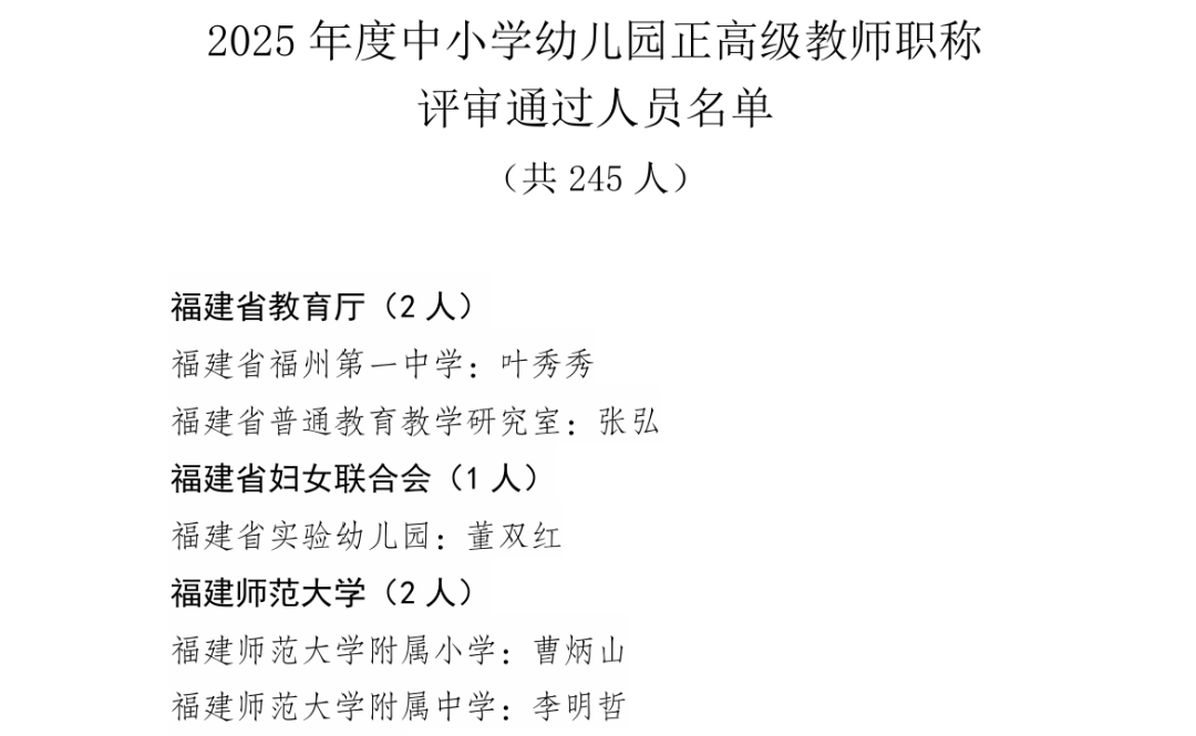 近日 福建省教育厅发布公示 245人拟获正高级职称 一起来看——
