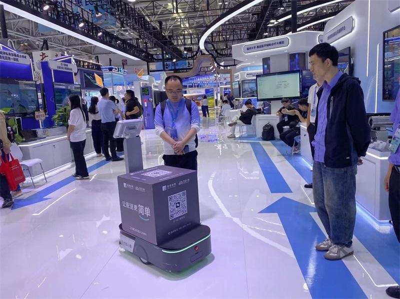 运输机器人遇到行人时会及时绕行。 在数字福建馆里,一台运输机器人载着货物在场馆里来回穿梭,遇到行人时会及时绕行,自动避障。这台名为“百变小鹿”的机器人,正是制造业智能化转型的生动缩影。 “这款机器人采用自研的人工智能与物联网技术,不依赖Wi-Fi网络,安装有深度摄像头和激光雷达,让障碍侦测更立体,有效减少侦测盲区,机身还配有超声急停防撞组件。”厦门攸信科技有限公司资深销售经理曾福镇说,现在工厂的智能化程度越来越高,年轻人对传统体力劳动的意愿也在降低,运输机器人既能有效减少人工成本,也能提升生产环节的效率。 作为首次参加数字峰会的“新面孔”,攸信科技希望借助峰会平台让产品走进更多场景。目前,“百变小鹿”已广泛应用于仓储拣货、线边仓配送、物料搬运等环节,在福建新能源、汽车玻璃、液晶显示器等领域的多家龙头企业投入使用,成为企业降本增效的“好帮手”。