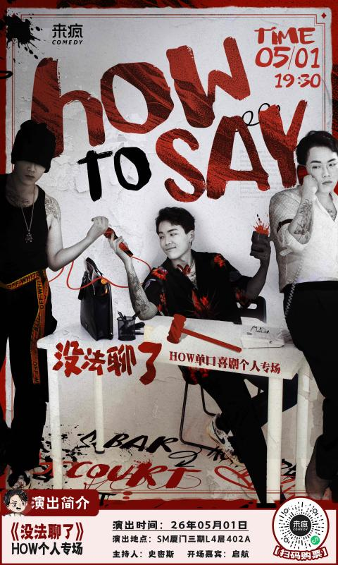 HOW个人专场《没法聊了》 时间: 5月1日 19:30 地点: SM厦门三期L4层402A-来疯喜剧 票价: 150/120元 购票渠道: 来疯喜剧小程序、大麦、猫眼 《脱口秀综艺明星秀》厦门站 时间: 5月2日 19:30 地点: 厦门歌舞剧院 票价: 380/280/180元 购票渠道: 大麦、猫眼
