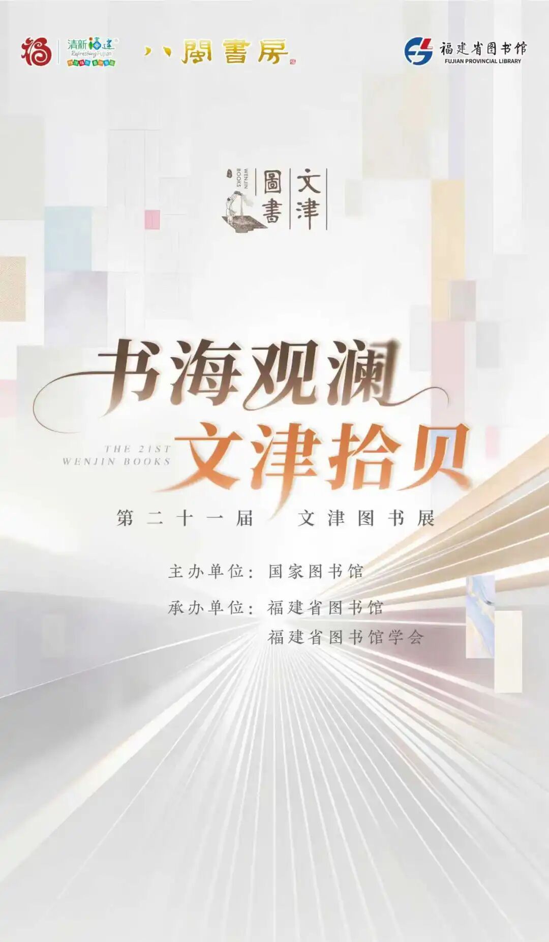 第二十一届文津图书展 时间: 4月30日-5月31日 地点: 福州市图书馆二楼展厅