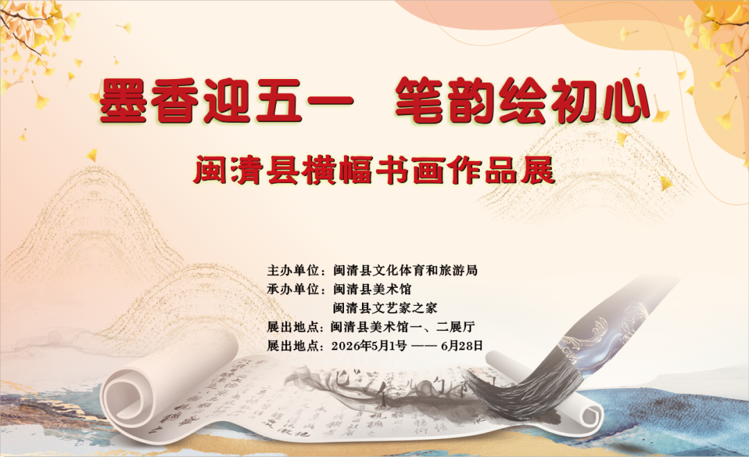 墨香迎五一 笔韵绘初心一一闽清县横幅书画作品展 时间: 5月1日-6月28日 地点: 闽清县美术馆
