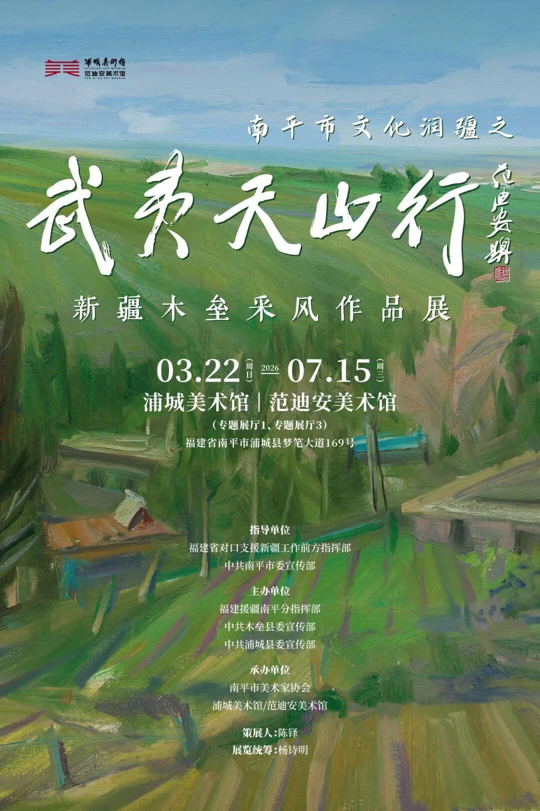 南平市文化润疆之“武夷天山行”——新疆木垒采风作品展 时间: 3月22日-7月15日 地点: 浦城美术馆(范迪安美术馆)
