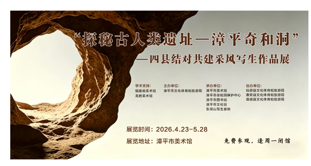 “探秘古人类遗址一漳平奇和洞”四县结对共建采风写生作品展 时间: 4月23日-5月28日 地点: 漳平市美术馆 第十七届海峡两岸少儿美术大展 时间: 5月6日-6月4日 地点: 三明市书画院(三明市美术馆)