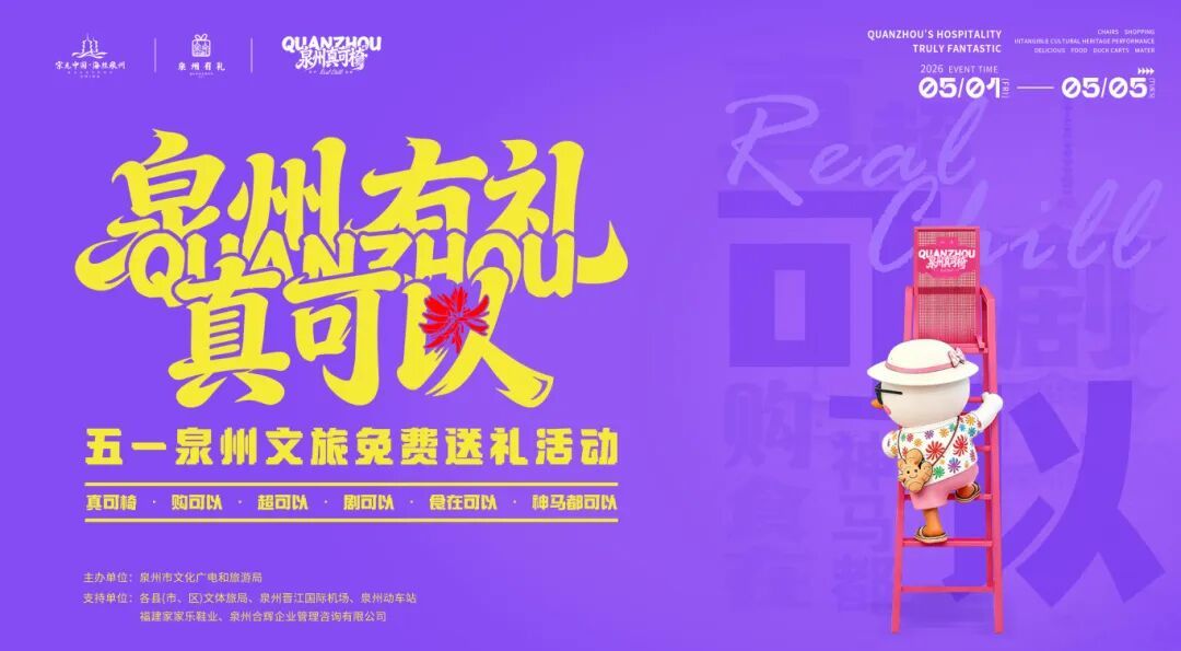 2026年五一“泉州有礼·真可以”活动 时间: 5月1日-5月5日 地点: 泉州古城区、十二县市区主题打卡点、晋江国际机场候机厅、泉州动车站候车室、泉州本土品牌线下体验店、各大美食商户门店 “泉州真可椅·欢迎来爬梯(Party)”2026五一·泉州发呆松弛计划 时间: 5月1日-5月5日 地点: 泉州古城区、十二县市区主题打卡点、晋江国际机场候机厅、泉州动车站候车室 三明 5·19中国旅游日三明市分会场活动 时间: 5月17日 9:00(暂定) 地点: 三明三元区爱在三钢里体育公园