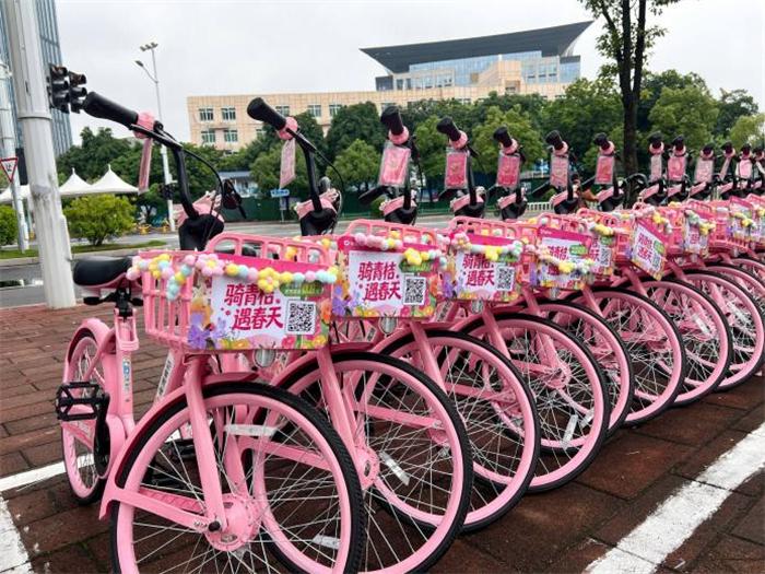 滴滴青桔于近日在福州重点区域置换投放的“春日涂装车” 来源:滴滴出行 此次亮相的“小粉车”是滴滴青桔的定制车型。车辆以柔和粉色为主色调,车筐处点缀缤纷花环装饰,车把特别配备淡淡香氛卡片,让香气伴随每一段骑行。作为新一代“稳稳滴”BM3.0车型的特别彩蛋版,“小粉车”在骑行舒适性、实用功能性与安全耐用性三大方面均实现了全面升级。