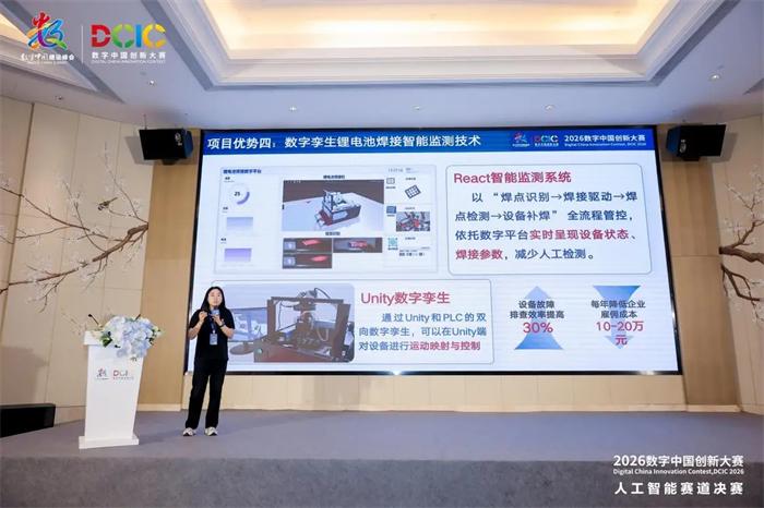 2026数字中国创新大赛·人工智能赛道总决赛现场 来源:福建人工智能自主创新联合体 三大亮点,彰显本届年会特色 一是应用导向更加鲜明,实用价值充分凸显。本届参赛作品普遍呈现鲜明的实用导向,“落地”成为硬性标准。大量案例深入公共场景、产业链条和消费市场,不再停留于企业内部工具或学术研究,而是经过市场检验、具备可复制推广价值的创新解决方案。 二是企业参与力度加大,产业赋能导向更加突出。本届大赛邀请阳明资本、星芒数创等多家知名投资机构合伙人及资深投资人加入专家评审团,与技术专家共同构建多元评审体系。评审维度从技术先进性延伸至商业价值、产业化路径、市场潜力等维度,更贴近企业实际需求,引导参赛作品向可产业化、可商业化方向持续迭代,推动创新成果真正赋能企业数智化转型。 三是自主算力全面支撑,科创根基坚实筑牢。本届赛道明确要求参赛方案基于国产算力、自主可控技术路径,强化国产算力与算法协同,与数据要素双向驱动,推动AI技术在自主创新生态上实现突破。 优秀作品掠影 今日决赛现场,多支参赛队伍带来兼具技术深度与落地价值的创新成果,令人印象深刻。