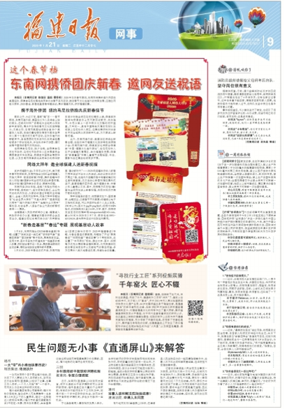 2020年1月21日福建日报网事版(9版)主要稿件: 这个春节档东南网携侨团庆新春 邀网友送祝语