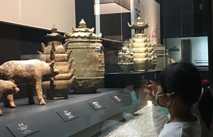 在腾讯上看过《宝藏四方:听福建博物院院长说海丝的故事》直播后,14日,一位妈妈特意带着女儿来到福建博物院,欣赏闽越王城的相关介绍。福建日报记者 树红霞 摄