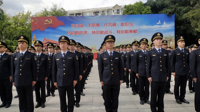 生态环保综合行政执法人员身着制式服装,女生精致!东南网记者张立庆 摄 “立正、稍息、向左转……”风采展示现场,执法队员们身着执法队伍制服,开展立正、敬礼、停止间转法等队列展示。队员个个精神饱满、士气高昂,动作一致,充分展现执法队伍飒爽英姿、作风严明的精神面貌。在现场,大家庄严宣誓:“听党指挥、政治坚定、服务人民、作风过硬、敢于担当、能打胜仗……”充分展现了生态环境执法铁军积极向上,团结拼搏的精神状态。