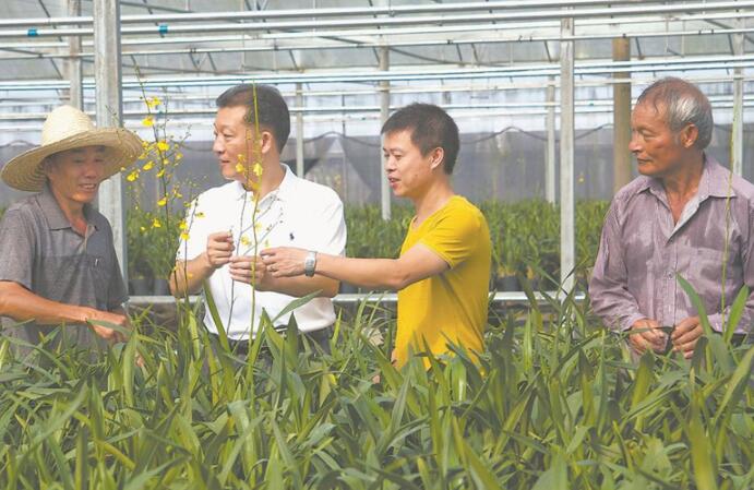 2015年6月27日,廖俊波(左二)在政和县铁山镇东涧花卉基地了解情况。徐庭盛 摄