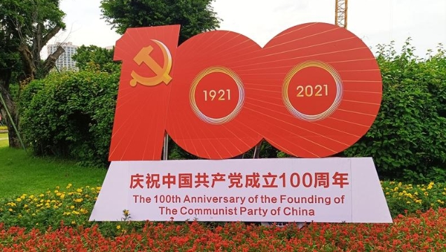 在福州五一广场附近,庆祝建党百年的宣传景观。东南网记者 林先昌摄