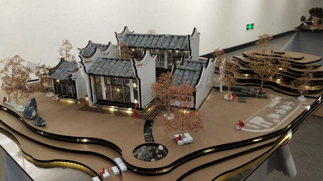 作品《三坊七巷(福州书院)》。东南网记者 张立庆摄 三坊七巷历史文化街区是福州古厝文化的重要代表,作品《三坊七巷(福州书院)》利用“马鞍墙”这一元素进行创新设计,营造古朴大方的氛围感及丰富的空间体验感,色彩搭配与布景都十分讲究、创意巧思。创作者郭毅隆和陈君逸通过实地调查与网络资源等多种研究方式深入了解目标建筑物,抓住建筑物特点,手绘精确到毫米为单位的图纸后,导入电脑进行机器雕刻制作,并根据实际情况加以创作。 “土楼是由不同大小的圆环垒起来的,相较于其他建筑物,我们需要刀将土楼楼顶削成圆形,这一步骤在制作过程中比较复杂。”作为漳州本地人,卢丽缘表示能将家乡的土楼微缩并送上展台十分自豪,她最大限度还原出土楼的人间烟火气息,希望可以带动大众对福建传统建筑文化的关注。 这些模型既保留传统古建筑特色,又结合现代设计进行创新,体现了中华优秀传统文化的当代转化。环境设计专业教师陈晶表示:让“00后”大学生和福建本土代表性古建筑进行“跨时空对话”,进行环境模型创作,既有助于本土传统文化在实体模型中得到沉浸式表达,又能激发学生的设计潜能。