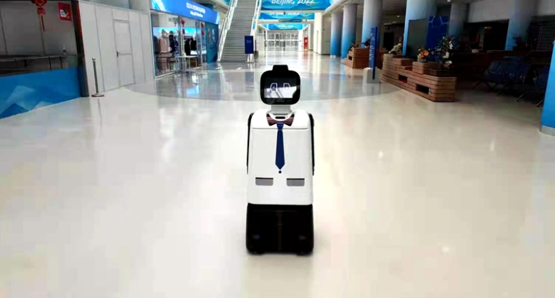 “笨小宝”机器人将在本届北京冬奥会场馆中负责移动测温与防疫监督的职责。受访者供图 “黑科技”二:“笨小宝”机器人在奥运场馆内移动测温防疫监督 日前,在北京冬奥会场馆内,由福建汉特云智能科技有限公司研发“笨小宝”按规定路线主动寻找人员并测量体温,当发现被测量者体温超标时,它会将体温异常者人脸数据存储上报。 据介绍,“笨小宝”机器人将在本届北京冬奥会场馆中负责移动测温与防疫监督的职责。该款机器人采用红外测温模组,检测距离可达5~6米,可同时检测5~6人,能够满足场馆人流量大、检测速度快的需求。此外,对区域内没有佩戴口罩的人员,“笨小宝”也会上前用英文提示其戴好口罩。 目前,在“冰立方”已有3台“笨小宝”上岗,负责运动员休息区、观众区和媒体区的巡逻,每天巡逻面积可达约6万平方米。相较于传统的人工巡逻,“笨小宝”可以全天24小时在岗,“累了”还可以自动充电、自动维护,效率更高。