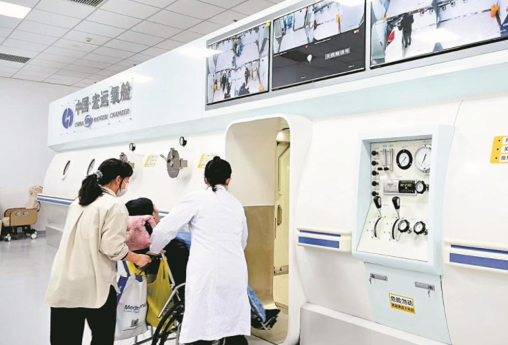 东南网2月22日讯(福建日报记者 张静雯 摄)近日,国家区域医疗中心——复旦大学附属华山医院福建医院、福建医科大学附属第一医院(滨海院区)高压氧科正式揭牌。该科引进的高压氧舱总长15米、直径达3.2米,轮椅、三舱一体,重达32吨,一次可容纳26人同时治疗,是我省最大的高压氧舱,技术水平居全国前列。 据介绍,高压氧治疗适用范围很广,除了在颅脑外伤、脊椎损伤、急性缺血缺氧性脑病以及突发性耳聋、一氧化碳中毒、气体栓塞等疾病的综合治疗中发挥减少痛苦、加快康复进程、降低致残率等不可替代的作用外,还广泛应用于亚健康人群的保健治疗。 |