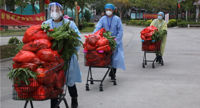 疫情无情人有情,爱心蔬菜送上门。24日,泉州市丰泽区城东街道前头社区美仙山二期的封控楼内,每户家庭都收到一袋爱心蔬菜。当天,全省首家残疾人互助合作社——南安市山夫生态农业合作社为前头社区捐赠了5000多斤蔬菜。福建日报记者 王毅 何祖谋通讯员 黄瑜鹏 摄