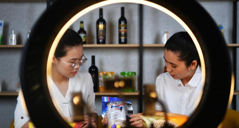 金砖国家商品服务中心工作人员在对金砖国家的优质商品直播带货(6月23日摄)。 近年来,厦门市对金砖国家贸易往来不断深化。为展现金砖国家特色商品和人文风情、促进金砖国家优质产品对华出口,厦门跨境电商产业园设立了金砖国家商品服务中心。中心汇集700余款金砖国家商品,将经贸合作与跨境电商有机结合,通过专题推广、直播带货等各种线上线下销售渠道,促进金砖国家优质产品对接中国市场,共同把握发展机遇。 新华社记者 魏培全 摄