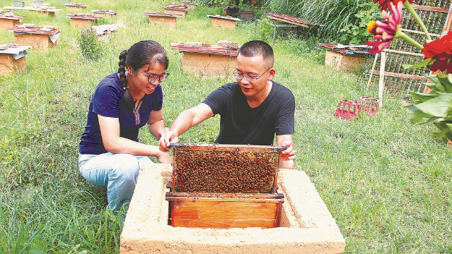 董兴煌、谢琼秀夫妇观察蜜蜂在“土蜂箱”度夏情况。 日前,连城县新泉镇西村村一个山坳里,成千上万小蜜蜂翩跹飞舞在黄金百香果园,一个个黄泥蜂箱点缀其间。种果兼养蜂户、返乡创业大学生董兴煌和妻子谢琼秀,正仔细观察蜜蜂度暑生长情况。 据悉,董兴煌毕业后在厦门某公司担任高管,回乡探亲时发现,家乡有着优渥的生态资源,但却缺少开发利用的致富项目。“关键是缺‘领头人’。旧观念不改变,有资源也难挣钱。”2014年,董兴煌毅然与妻子一同辞去工作,回到家乡开发“种植黄金百香果+生态养殖蜜蜂”的创业项目,一同成为敢吃螃蟹的“新农人”。 在镇党委、政府与村“两委”积极支持下,夫妻俩成功流转土地,解决水源等问题,注册创办了蜂宝家庭农场和“泉心泉意”品牌,带动并扶持全镇60多户村民养蜂、种百香果。 董兴煌苦心钻研、大胆开拓蜜蜂养殖新技术,研发用黄泥夯打出蜜蜂舒适的冬暖夏凉“土蜂箱”,相比传统养蜂方式产蜜量提升了18%,纯度提升了9.8%,收到较好的经济效益。而今,他的农场从最初的40余亩百香果、20箱(群)蜜蜂发展到200多亩百香果、600多箱(群)蜜蜂的产业规模,年产蜂蜜8000多公斤,产值达68万多元,并先后获评县级示范农民专业合作社、市级大学生回乡创业示范基地等。 “我一直牢记创业初衷,要让家乡父老过上好的生活。”董兴煌说道。近几年,他带动全村10户村民种植200余亩百香果,总产量达2万多公斤;养蜂300箱(群),总产蜂蜜2250公斤,产品销往北京、上海、广州、福州、厦门等地,每年还有2000多人次来自助采摘百香果。(邹善水 沈桂芬 文/图) |
