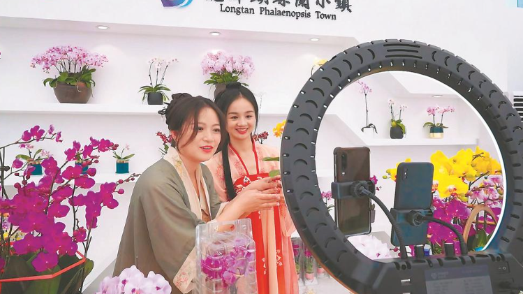 文旅特派员陈军协助枫林村直播销售蝴蝶兰。