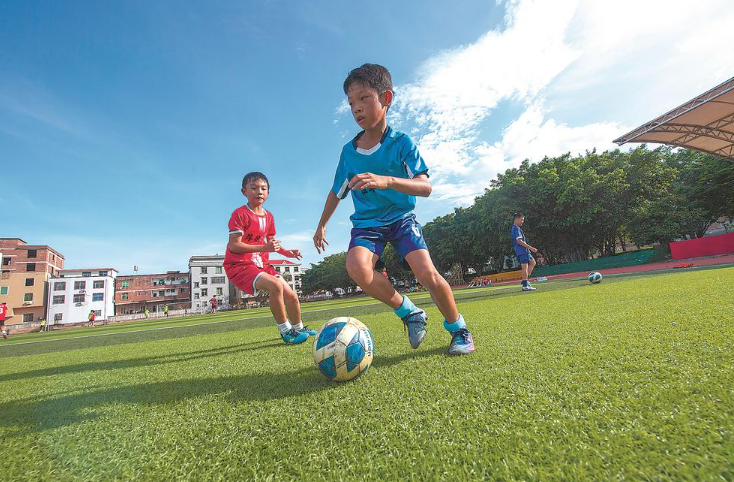 南安西溪中学足球场,孩子们参加暑期训练。11年来,每年都举办的暑期足球训练营遍布南安各乡镇。 东南网9月1日报道(福建日报记者 王毅 通讯员 黄瑜鹏 陈鑫炜 文/图) 今年暑期,刚刚被河南师范大学体育专业录取的吴宇辉,回到了曾经就读的南安市省新镇中心小学,带着学弟学妹进行足球训练。10年前的那个夏天,在省新镇中心小学沙土飞扬的旧操场上,还是少年的吴宇辉应该想不到,足球为他开辟了一条通向未来的成长之路。 “足球给了这些农村孩子一个充实的童年,很多人可能一个足球明星都不认识,但这项运动为他们带来了快乐和自信。”南安足协副主席林艺雄的记性极好,特别是对那些球踢得好的孩子印象深刻,“单就体育专业录取的人数来看,2018年到2023年参加过足球训练营的孩子中,就有30多人被各大体育院校及高校的体育专业录取。” 南安市丰州镇西华小学总共只有256名学生,大部分是来泉务工人员子女。虽然每个年级只有一个班,校长庄小舟还是决意要开展校足球联赛,并要求每名同学都要参与。这个乡村小学拥有一片8人制和一片11人制的双球场,每间教室的后门边都安装了足球架子,每名学生都有自己的专属足球。庄小舟说:“我们学校走出去的球员,有7人入选省足球队。” 文明其精神,野蛮其体魄。不断改善的校园运动环境,为所有热爱运动的孩子带来了畅快的体验。从2012年开始,南安足协和南安市教育局每年都举办暑期足球训练营,南安足协派出专职教练员,充实到各个乡镇中心校,义务为学生的暑期训练提供专业指导。 2022年,南安市与省体育局携手创办了全省第一支职业女足队,这为南安校园足球的发展注入新的动力。在今年3月9日举行的“亚足联女足日”女孩足球节上,南安市“福建(南安)女足后备人才基地校”试点创建工作启动,3所中学和7所小学获得授牌。 今年暑期,南安的校园足球训练营人数又创新高,近700名学生在各乡镇的训练场上挥汗如雨。10多年的星星之火,不仅点燃了乡村少年对足球运动的热情,也让足球文化在这里扎下深根。