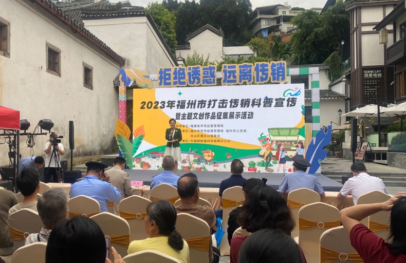 活动现场。东南网记者 卢金福 摄 东南网报道10月27日(记者 卢金福)文创扇子一面为“拒绝诱惑,远离传销”警示标语;一面为创意原创合体字 “不传销”,将三个字组合成一个字,强调字的符号性,加强记忆与警示。这是由福州烟台山商家设计的文创作品。今日下午,一场打击传销科普宣传暨主题文创作品征集展示活动在烟台山举行,发挥“文化创意作品”的独特魅力,宣传传销活动的危害、科普识别新型传销活动的手段,提高市民识别、防范传销活动的意识。 打击传销主题明信片首发 免费发放现场邮寄 活动以“拒绝诱惑,远离传销”为主题,由福建省市场监督管理局指导,福州市市场监督管理局、福州市公安局和仓山区烟台山管委会联合主办。 在活动现场,举行了打击传销主题明信片的首发仪式。明信片一套5张,以烟台山标志性的景色照片为背景,配上生动活泼的科普语言,具有独特的纪念价值。 记者看到,参与活动的市民朋友纷纷领取明信片,并在临时邮寄点现场寄送,将烟台山的美景、美好的祝福和防范传销的善意提醒,通过一张小小的明信片,寄送给远方的亲人和朋友。 近年来,福州市市场监督管理局不断创新打击传销科普宣传产品,通过这些富有新意的宣传品,将防范传销活动的意识送到千家万户。 各方力量齐动员 拒绝诱惑远离传销 在活动举办地烟台山,聚集了很多福州的文化创意新生力量。为扩大打击传销科普宣传的影响力,主办方提前向烟台山的文创商户征集创意作品,得到了商户们的积极响应。在活动现场,三家商户代表带上自己设计的文创作品进行了现场展示。包含打击传销主题冰箱贴、写有主题口号的折扇、产品包装标签等,让大家眼前一亮。 参与活动的商户表示,在设计这些作品的过程中,他们都深入了解了现在新型传销的主要特点和危害,在以后的创作和工作中,他们也会把这些知识科普给自己的朋友和客户,并发动大家一起参与到打击传销的科普宣传当中。 执法人员以案释法 敲响抵制传销警钟 在活动现场,来自福州市市场监督管理局的执法人员与市公安局的民警通过真实的案例,以案释法,用“人财两空”的教训,为大家敲响警钟。同时,针对新型传销的特征、打击传销的有关法律法规等倍受大家关心的问题,与现场观众互动问答,科普识别新型传销活动的手段,提高市民识别、防范传销活动的意识。 2023年,福州全市按照上级工作要求部署贯穿全年的打击传销专项整治行动,坚持打击聚集性传销和打击网络传销两手抓,今年以来,全市公安机关共立组织领导传销案件43起,破案71起(其中破年前案件55起),抓获犯罪嫌疑人66人,移送起诉72人;全市市场监管部门查办传销案件3件,印发宣传材料10000余份,发布各类警示提示、典型案例12条,排查涉传线索50条,稳妥处置各类涉传事件、舆情,及时消除可能存在的风险隐患。
