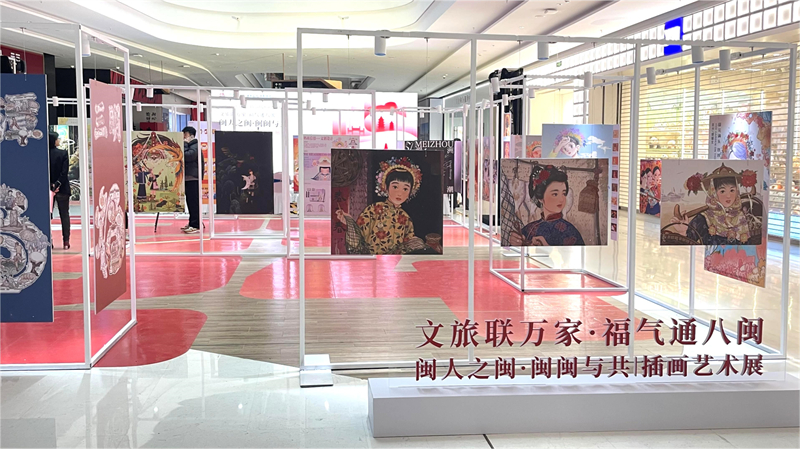 展览现场 东南网记者 庄宇婧 摄 东南网1月9日讯(本网记者 庄宇婧)1月9日,以“闽人之闽•闽闽与共”为主题的福建插画艺术展在福州苏宁广场开展。本次活动由福建文化和旅游厅主办,旨在通过创新的艺术表达形式,展现福建多元文化和文旅资源,助力福建打造“常来常往、常来常想、常来常新”的世界知名旅游目的地的目标。 为吸引更多新青年群体认知及传播福建文旅,主办方从近2000幅参赛作品中精选出350幅画作,将作品结合闽地文化、非遗技艺交互活动,呈现一场福建文旅主题的插画艺术展,以新视觉创意形式更好地进行推广传播。艺术展分为两期,第一期于2024年1月9日至2月9日,在苏宁广场B座中庭,向市民和游客展出其中的150幅插画。第二期于2024年2月10日至3月10日期间,在苏宁广场B座中庭以及A、B两区的展示空间陆续展出全部作品。后续还将在福州三坊七巷等地展出。 据了解,展出前期,主办方以“海丝起点 清新福建”为主题,推出了文旅主题插画共创征集活动,诚邀全国设计师、插画师、高校师生、艺术从业者、爱好者,以福建五大世遗地、三条旅游带、“七沿”文旅产品、九项非遗传承等独特的文化和旅游资源为灵感源泉,呈现福建作为世界知名旅游目的地的深厚底蕴及现代化成果。