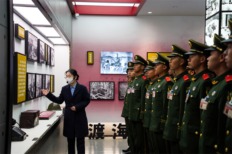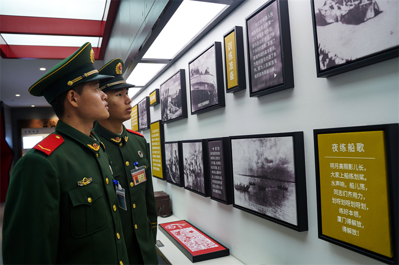 官兵们正在阅读馆内资料。魏伯嘉 摄 东南网1月15日讯(通讯员 陈悦 本网记者 余跃)近日,武警厦门支队在厦门市湖里区神山教育基地开展新兵下连第一堂政治教育课,让新同志在重温前身部队解放厦门的光辉历程中感悟革命先辈的战斗精神,激发当好红色传人的精神动力。 神山是第一面五星红旗插上厦门岛的地方,解放厦门时先后有9名战士为此牺牲,留下“人倒了也不能让国旗倒下”的宝贵精神财富。 “快看,碉堡上还有弹坑!”在教育基地山体公园旁的废弃碉堡旁,战士马雨龙与其他战友在神山现今仅存的一座碉堡旁驻足观看。 当年,国民党守军为阻挡我方进攻,对碉堡进行加固,但英勇的解放军不惧强敌,艰苦奋战,最终击溃敌人的防线。新同志们纷纷感慨,碉堡上的弹孔就是前身部队官兵浴血奋战的见证! “威兵无敌,旗展神山”展陈室是整个神山教育基地的核心展厅。战士们通过丰富的实物、照片和多媒体影像,详细了解神山战斗的经过,沉浸式感悟战斗英雄们英勇无畏的精神。 “最让我感动的,就是8名战士先后倒在敌人的枪林弹雨之中,直至第9人才将五星红旗插上了神山山顶。他们以行动践行了‘人倒了也不能让国旗倒下’的铮铮誓言,这种不畏艰难困苦,誓死完成任务的精神令人感动!”新同志杨金圣感慨道。 革命先烈用初心使命铸就的“绝对忠诚、敢于牺牲,接续奋斗、勇毅前行”神山战斗精神,是值得广大官兵学习的鲜活教材。“我们将神山作为新同志来到驻地的第一课,并组织重温军人誓词,目的是让新同志在学习历史中传承红色基因,激发大家作为新时代革命军人的使命感、责任感。”该新训单位政治教导员王文进说道。