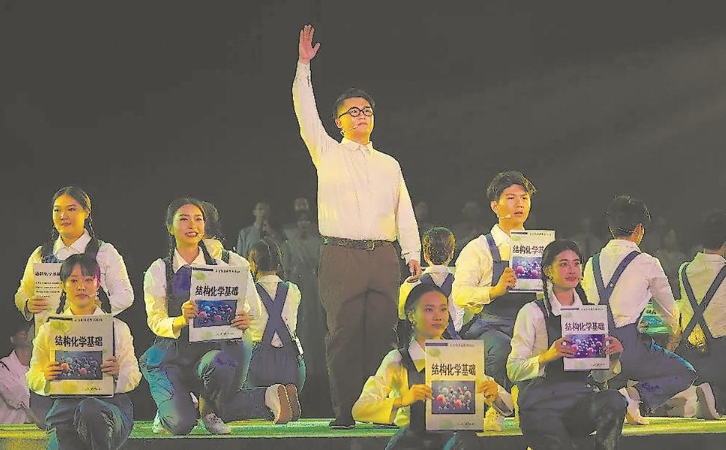 沉浸式舞台拉近观众与剧情的距离。 东南网1月17日报道(福建日报记者 李珂 通讯员 许晓凤 文/图) “他毅然决然,奔赴福州,扎根榕城,成为第一棵‘嘉木’”……日前,由福建省科协推荐、福州大学原创和演出的大型大学生沉浸式戏剧《嘉木留芳》,入选全国“科学家故事舞台剧推广行动”首批重点推介剧目名单(全国仅10部)和话剧推广名单(全国仅15部)。 《嘉木留芳》艺术再现了我国著名科学家卢嘉锡先生潜心基础研究、扎根科研基层的一生,深刻展示了他“严谨求实”的治学精神。福州大学人文社会科学学院院长吴慧娟介绍说,该剧创新运用沉浸式戏剧的形式,打破传统的演出剧场和镜框式舞台呈现样式,将舞台设于观众中央,并延伸进观众席之中,增加了科技感和互动性,“实现了从‘演出文本’到‘演出空间’的大转变,带给观众全新的视觉和情感体验”。 “先生留下一片星火” “一声亲切的‘卢先’,将我们一同拉回福州大学刚创办的年代。同学们饱含情感的演绎,让大家真切感受到卢校长干事创业的乐观和坚毅。”聊起数次观看《嘉木留芳》的印象,福州大学土木工程学院辅导员陶亮感慨良多。 卢嘉锡是著名的物理化学家、化学教育家,中国结构化学学科的开拓者和奠基人,也是福州大学化学学科和中国科学院福建物质结构研究所的创建者。《嘉木留芳》的剧情,演绎的就是他在上世纪60年代毅然决然带领部分厦大师生搬迁到福州创办福州大学的故事。 剧中,在困难时期,卢嘉锡发动学生积极参与校园建设,用自己的餐券救济困难学生,鼓励工厂工人报考福州大学;在学校发展停摆之际,他号召师生在写给省委的信上签字,力保建设成果;在风云动荡的年代,他与家人共渡难关,建设研究所、促进校企研三合一式发展…… “卢嘉锡先生一次次遭遇困难,又一次次重新站起;一次次希望渺茫,又一次次重振信心。老一辈福大人艰苦奋斗、严谨求实、勇于拼搏的精神在剧中生动再现,也给台下的师生上了一堂深刻的思政课。”福州大学教师沈成平说。 “先生白手起家、筚路蓝缕、攻坚克难创办福州大学,追求科研理想,这是一个励志故事。他为福州大学留下了一片星火,为祖国科研事业留下了一个春天。”学校有关负责人表示,作为福州大学“三全育人”综合改革精品项目之一,《嘉木留芳》是新时代福大构建“大思政”育人格局的重要体现,是学校坚持一流文化建设,秉承“科学精神与人文精神是校园文化之两翼”理念的重要成果,实现了舞台和讲台的深度融合。 邀请后人研磨剧本细节 《嘉木留芳》历时三年倾力打造,由主要演员、歌队演员、交响乐团、合唱团等近200名师生协同配合,经过100多个日日夜夜的训练磨合而成。排练过程则由省艺术研究院一级导演傅磊坐镇指导。 创作中,主创团队力求还原历史故事生活的真实样貌。“比如,在场景方面,剧本有一个修改版曾想把化工厂换为校实验室,但剧情反映的是卢老已经在做产学研,为了尊重史实,场景还是放在了化工厂。”吴慧娟介绍说。 记者了解到,福大多次举行《嘉木留芳》剧本论证会,邀请卢嘉锡先生的长女卢葛覃以及省艺术研究院、省人民艺术剧院的编导参会。“他们针对剧本前期创作和修改提出了宝贵意见。”吴慧娟告诉记者,卢葛覃不仅肯定了剧本的核心精神,也分享了诸多卢嘉锡先生工作、生活中的细节,为剧本提供了可靠的素材来源,“首演邀请她来观看,演出受到了她的肯定”。 《嘉木留芳》立足传承和弘扬福州大学“三种精神”。在剧本围读会中,为选出相应角色,大家围坐在一起,化身剧中角色,还原风雨飘摇中老一辈人的建校坎坷征途,展现演技以及对卢嘉锡“严谨治学”精神的理解。在傅磊导演的指导下,演员们逐渐走入角色内心,感受人物情绪,体会戏中人生,注重情绪、语气等细节,力求精益求精。 演员内心离人物越来越近 “卢嘉锡先生很不好演,不仅因为戏份非常吃重,而且他一直是一位非常平易近人的人。在剧中,演员既要展现他严谨的治学精神,又要体现他对同事的关怀关心,要演出他的人格魅力,难度是相当大的。”吴慧娟说。 卢嘉锡的扮演者,是福州大学人文社会科学学院2020级艺术设计研究生蒲凡。他说,对于角色的认知体会、情绪的瞬间转换与表达,是演出的一大难点。 “扮演真实的历史人物角色,于我是一次全新的挑战。因为故事的受众群体非常宽广,既有和自己同龄的学子,也有学校的众多老师,更有许多认识卢嘉锡先生、曾与他打过交道的人。我演的像不像卢老,前辈们一看便知。”蒲凡说。 为此,他课余花了不少时间搜集卢嘉锡生前的视频影像资料,学习和模仿卢老说话的方式、语气词的运用。“在排练过程中,我也尝试过把自己置于卢老的世界,和其他演员以剧中人物的方式交流或幽默对答,寻找日常生活中卢老的气息。” 一遍又一遍地打磨台词,戏里戏外重复体验人物的内心……在导演傅磊一次次精益求精的指导下,蒲凡表示,感觉自己的内心离卢嘉锡先生越来越近了。“演员不断打磨,对人物形象的刻画,可以说是入木三分了。”吴慧娟说。 不久前,《嘉木留芳》参加了第五届福建省大学生戏剧节的展演。业内人士表示,演出沉浸式、接地气、有温度,学生演员的表达铿锵有力,舞美与灯光美轮美奂,全体演员、工作人员协调配合,带领观众穿越时间年