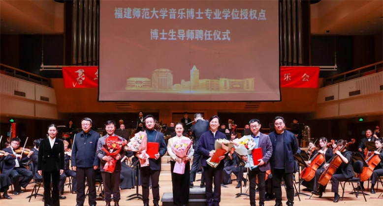 福建师范大学聘任李心草、廖昌永、雷佳、阎维文、王宏伟等五位艺术家担任博士生导师(福建师范大学供图) 东南网3月7日讯(本网记者 冯川叶)日前,由福建师范大学主办,福建师范大学音乐学院承办的“春华秋实”中国作品音乐会在北京音乐厅举办。著名指挥家、中国音乐学院院长李心草,著名男中音歌唱家、上海音乐学院院长廖昌永,著名女高音歌唱家雷佳,著名军旅歌唱家阎维文,著名男高音歌唱家、天津音乐学院院长王宏伟,福建师范大学党委书记潘玉腾、党委副书记陈晓红,福建师范大学博士生导师孙砾以及参加全国两会的部分代表、福建师范大学在京校友、社会各界人士莅临现场观看了演出。 音乐会由福建师范大学音乐学院教师、中国音乐金钟奖获得者叶子豪、林子豪领衔,青年指挥家、钢琴家田光浩担任指挥,北京爱乐汇交响乐团、福建师范大学音乐学院、福建省歌舞剧院联合演奏,分上下半场进行。上半场为钢琴协奏曲《黄河》。在演奏家们的激情演绎下,激昂的旋律从内心倾泻而出,似滚滚黄河水奔腾而来,每个乐章都激荡着中华民族的澎湃力量。下半场为原创歌剧《鸾峰桥》选段。歌剧《鸾峰桥》以下党乡下党村的“鸾峰桥”为核心场景,讲述了下党乡乡亲们在党的领导下弱鸟先飞、滴水穿石,奋力摆脱贫困走向乡村振兴的故事。歌唱家们声情并茂地诠释了“中国共产党的领导是中国人民摆脱贫困、过上幸福生活的根本保障”这一深刻主题。青年艺术家们用精湛的技艺,带来了富有闽派特色的文艺演出,奏响了讴歌美好时代、礼赞伟大祖国的主旋律,现场气氛热烈,掌声不断。 音乐会期间,为进一步加强博士生导师队伍建设,更好推动音乐学学科建设,培养出更多高层次、高水平艺术人才,福建师范大学举行了音乐博士专业学位点博士生导师敦聘仪式,聘请李心草、廖昌永、雷佳、阎维文、王宏伟等五位家喻户晓、德艺双馨、广受人民群众喜爱的中国音乐界顶尖艺术家担任博士生导师。福建师范大学党委副书记陈晓红研究员主持仪式,校党委书记潘玉腾教授逐一给五位受聘的艺术家颁授聘书。五位专家的加盟将有力推动福建师范大学音乐学学科建设、人才培养再上新台阶、取得新成就,为国家和福建教育文化艺术事业繁荣发展作出新的更大贡献。五位艺术家与在京的校友、全体教师、观众一同演唱《我和我的祖国》,将聘任仪式推向高潮。 据悉,本次音乐会在互联网同步进行直播,引起社会广泛关注。截止5日晚23时线上直播观看人次突破8000万。音乐会前,召开了福建师范大学音乐博士专业学位点建设研讨会,由博士生导师孙砾主持。研讨会上,受聘的博士生导师、全国艺术专业学位研究生教育指导委员会秘书长宋慧文、中国学位与研究生教育学会评估委员会副主任委员林梦泉、福建师范大学党委副书记陈晓红、研究生院和音乐学院负责人就音乐专业博士研究生招生与培养、学位点建设等内容进行了热烈研讨。