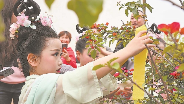 23日,2024闽都花朝节活动在福州市仓山区梁厝特色历史文化街区举行,市民游客以簪花礼、祭花神、赏红护花、插花体验等一系列传统文化活动,迎接百花盛开的春天,展现福建省级非遗——“花朝节传统习俗”风采。