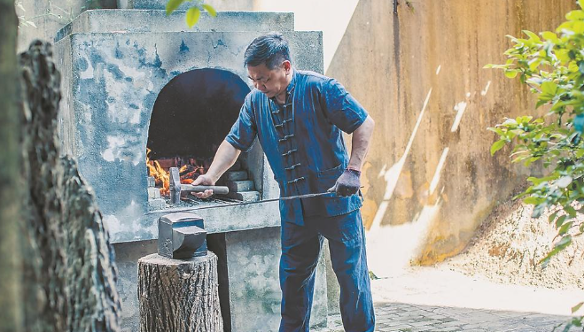 松溪茶刀(松溪融媒体供图) 东南网6月19日报道(福建日报记者 许可欣 通讯员 范鑫琳) 前不久,松溪茶刀亮相香港国际茶文化博览会,并收获了来自非洲、印尼和马来西亚等地订单。参展的这批茶刀,由湛卢铸造技艺锻制而成。 全球首个工业智能领域的奖项“湛卢奖”,就是以中国五大名剑之首湛卢命名的。但鲜为人知的是,这把举世闻名的宝剑,它的诞生地是福建松溪,其铸造技艺可上溯至春秋时期。因与湛卢宝剑紧密的历史传承,松溪也由此被誉为“中国宝剑之乡”。 近日,记者走进这座闽北小城,探寻湛卢铸造技艺的“前世今生”。 古法重获新生 相传,春秋时期铸剑大师欧冶子在松溪境内的湛卢山铸剑三年,最终炼制了湛卢宝剑。湛卢宝剑铸成后,屡次易主,传到南宋抗金名将岳飞手中。但自岳飞遇害后,宝剑也就失传了,湛卢铸造技艺随之消失在历史长河之中,令人扼腕叹息。 转折出现在1984年。那年,松溪成立了湛卢宝剑厂,铸剑大师杨宗文担任首任厂长。在他的带领下,宝剑厂整合、挖掘民间传统铸剑古法,并辅以现代工艺,复原生产宝剑,湛卢铸造技艺重新回归大众视野。 “当代湛卢铸造技艺打造的产品有仿古工艺剑、太极剑、武术表演剑等,由宝剑爱好者作为艺术藏品和健身器具。”松溪县文化体育和旅游局副局长叶明介绍。2011年,湛卢铸造技艺被列入福建省非物质文化遗产保护名录。 在松溪县文化广场的“松溪茶刀”店内,记者见到了这项非遗技艺的代表性传承人叶向春。他告诉记者,早在1992年,他开始师从杨宗文习练湛卢铸造技艺,经过30多年的积淀,如今已熟练掌握了以铸造锻打为主,铜工、木工、磨工、漆工、雕工等多种技艺为辅的湛卢铸造技艺。其中,铸造锻打涵盖了铸、锻、夹钢、铲、锉、镂、刻、烧刃、淬火、回火等多项技艺。他的双手也留下了湛卢铸造技艺传承的印迹,遍布伤痕。 “先人创造了这项技艺,我们有责任将其一代又一代地传承下去,并且让它焕发新生。”叶向春欣喜地看到,近年来,松溪也在积极探索这项非遗技艺的传承之路,鼓励宝剑、茶刀爱好者向非遗传承人学习湛卢铸造技艺。经过层层筛选,今年年初,叶向春收了5名新徒弟,位于河东乡大布村的湛卢铸造研学基地也正加紧建设中,建成后,它将专门用于培养湛卢铸造技艺的后备人才。 新品融入生活 为了更好地传承,古老的非遗技艺都在寻觅与现代生活的融合。湛卢铸造技艺也是如此。 松溪复原湛卢铸造技艺后,早些年还是以生产宝剑、太极剑等传统刀具为主。鉴于闽北乃至福建是我国重要产茶区,漫山葱茏的茶园和松溪人民的饮茶习惯,促使湛卢铸造技艺生活化产品——松溪茶刀诞生了。 茶刀是茶具辅助工具,用来撬取紧压的茶饼。茶刀虽小,却承载着湛卢铸造技艺的基因。松溪茶刀是以湛卢铸造技艺为基础,采用百炼钢为材质,经反复折叠、旋纹、扭转锻打、淬火等十二道纯手工工序,再加上独特的烤蓝和镶嵌扭转技术锻造而成。 据介绍,茶刀保留了花纹钢特有的质感和触摸感。其中,刀身经多次反复折叠锻打,呈现出天然彩色纹路;刀柄采用难度极大、容易断裂的古法扭转锻打而成。 “为了提升茶刀的硬度,我们在制作茶刀的原材料中加碳冶炼,这样撬茶饼就更省力。”叶向春告诉记者。 在坚守匠心、精心打磨技艺保证品质的同时,松溪茶刀的款式也在日渐丰富。目前,茶刀款式已经开发了300余种,包括“行云流水”“同心结”“福文化”“美人鱼”和“梅兰竹菊”等系列产品。叶向春也与徒弟方义松一起参与设计了“青虹”茶刀。 “原本国内外市场上销售的茶刀产品,基本都是采用机器批量生产制造,单纯是一件工具,没有艺术价值。松溪茶刀采用纯手工锻制,款式丰富,既有生活实用性,又有观赏和收藏价值,深受市场的青睐。”叶明说。 近年来,松溪茶刀获得了第三届、第五届、第六届、第八届“福建文创奖”和第三届“福建好礼最佳创意奖”等荣誉,成为湛卢铸造技艺衍生打造的最知名的文创产品。前不久,“松溪茶刀”还成功注册了地理标志商标。 非遗走出深山 随着松溪讲习班的兴起,“松溪茶刀”店铺和吴山头村的湛卢铸剑技艺传承人工作室也成为热门讲习点之一。叶明告诉记者,在吴山头村,还有一座长30余米的湛卢诗歌长廊,集中展示了历代与湛卢宝剑有关的诗歌。而在松溪梅口埠景区,有一间打铁铺专供远道而来的游客体验这项非遗技艺。 “湛卢铸造技艺不仅是松溪的文化符号,也是大家共同的文化瑰宝。希望越来越多的人能一睹它的风采。”叶向春告诉记者,技艺在传承,产品在更新,但作为非遗传承人,最重要的还是让这项非遗走出深山,打响其知名度。 除了近期的香港国际茶文化博览会,近年来,在松溪政府的大力支持下,松溪茶刀还在厦门“9·8”国际投洽会、深圳茶博会、哈尔滨东北亚博览会、中国国际进口博览会、澳门国际贸易投资展览会和北京国际电影节等大型展会上亮相。2018年,松溪茶刀被德国红点设计奖官方网站“相中”,产品信息成功走出国门。 “在去年的海峡两岸茶业博览会上,我们采用线下展览和线上同步直播的形式进行产品推介。线上直播不到一小时,百余把松溪茶刀就被一抢而空。”方义松告诉记者。 日前,叶向春与中国香港著名导演、动作指导袁和平达成合作协议,为其拍摄的电影提供刀剑类的道具,把公司