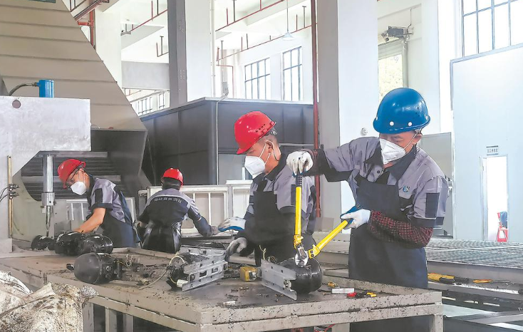 南安一家水暖企业在生产水阀。铜、铁、铝等回收材料在当地就可以实现循环再利用。