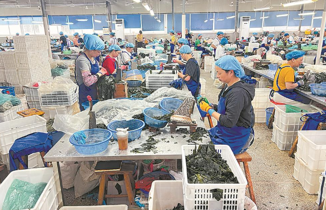 近日,在福建溢源海洋食品有限公司,工人在车间制作海带结。 东南网6月25日报道(福建日报记者 尤方明 通讯员 陈秀静 陈伟滨 文/图) 时至6月下旬,霞浦海带产业的“主战场”已由蔚蓝深海切换至加工车间。在福建溢源海洋食品有限公司,满载盐渍海带的货车来回穿梭,成箱海带经叉车装卸直入冷库;车间内,数百名熟练工人巧手翻飞,将成片海带缠绕成结,每天约有10吨海带结从这里产出;“霞浦海带经悬挂晾晒,干净无沙,口感好,营养丰富……”直播间里,多名主播正声情并茂地推介家乡特产。公司上下,洋溢着创业干事的火热气氛。 自上世纪50年代末海带南移栽培成功以来,海带产业已成为霞浦“一村一品、一带一业”发展的重要支柱产业。霞浦于2009年荣膺“中国海带之乡”称号。目前,全县养殖海带占海面积约30万亩,产值约40亿元。 在这近70年的接力赛中,涌现出一批颇具行业影响力的企业。其中,溢源公司持续发力标准化养殖、精细化加工、多渠道销售,成功跻身农业产业化省级重点龙头企业行列,年销售额突破亿元关口。公司董事长苏少华同时也是省政协委员、霞浦海带协会会长,跟随他的脚步,记者试图探寻海带与当地经济发展如何同频共振。 近70年的接力赛 海带是冷水性的大型经济藻类,在我国自然分布于山东半岛地区(青岛以北)和大连沿海地区。最初,业内曾有“海带不能过长江”的说法,但随着上世纪50年代末海带南移养殖关键技术的攻克,一片片深绿色的海洋蔬菜扎进了霞浦海区。 出生于霞浦县沙江镇的苏少华,从小便感受到邻里街坊对于养殖海带的热情。“霞浦气候温润,海区水流平缓、水质优异,天然适宜海带生长,一经试种成功,很快获得农户垂青。”他说。 不过在当年,海带养殖的收益偏低。一个重要的原因在于种苗成本居高不下。“用于育苗的种海带完全依赖从北方引进,光是海带苗成本便占到销售收入的50%以上,要知道如今这一数字仅为1%。”苏少华感慨地说。 科研力量造就了转变。在上世纪70年代,福建三沙海带育苗场开展的种海带度夏试验取得成功,“北种南调”由此成为过去式;在此后的10年间,科技工作者又将海区培育的种海带转移至室内自然光低温条件下度夏,此举使海带养殖时间提早半个多月,海带生长期延长,海带单产比原有秋苗提高30%以上,经济效益显著提升;而后,“荣福”“三海”“黄官”“海嘉”等一系列适宜福建海域栽培的高优品种相继问世,为霞浦海带产业发展提供了坚实的种质基础。 不止于种业创新,晾晒工艺的进步也助推霞浦海带品质迈上新台阶。早年农户大多直接在地面上晾晒海带,这一方式不仅效率低下,而且晒出的海带泥沙等杂质含量多,严重影响产品质量。 针对这一问题,渔民们想出了新招。在苏少华的家乡沙江,幅员辽阔的滩涂上遍插竹竿,竿上舒展的海带叶恰似层林尽染。如今的霞浦正在积极推行海区插竿悬绳日晒、搭架日晒和竹垫日晒等模式,如此晾晒出的海带洁净无沙、叶块完整、质量上乘。 经过60余年的发展,霞浦人民在实践中不断总结生产经验,在海区选择、筏架设置、幼苗暂养、剔苗夹苗、养殖管理、水层调节、增加浮力等环节形成一套较为成熟的海带养殖技术体系。“现在一个农户家庭的全年生产量相当于计划经济年代近40户人家的总和。”苏少华说,在2023年,霞浦海带产量达14.7万吨,占宁德全市产量近90%。 此外,令苏少华印象颇为深刻的,还有交通巨变给产业发展注入的强劲动能。“在计划经济年代,沙江的海带多销往江西南昌。彼时,火车走上两个月才能运抵目的地。而今,相同的路程只要花费7个多小时,这极大便利了霞浦海带的销售。”苏少华表示。 机械应用,品牌升级 2002年,由海带养殖起家的苏少华创办了福建溢源海洋食品有限公司。起初,公司主攻盐渍海带产品,因为在原材料选择方面不受天气条件限制。“每逢海带成熟,我们可以在最佳时节采收加工。若要制作传统的干制海带,则需等待连续的大晴天。一旦天公不作美,海带极易出现烂尾、发硬等现象,影响品质。”苏少华说。 但随着公司业务发展,进军多种品类市场成为绕不开的一道坎。如何避免海带烘干靠天吃饭?机械化设备应用发挥了关键作用。苏少华表示,溢源公司现已引进全自动烘干流水线,与传统自然晾晒相比,效率提升了近5倍,不仅节约了海带晒、收的人工成本,还可通过精准控温、均匀烘焙锁住海带的新鲜口感。 尝到甜头后,溢源公司在先行先试的路上愈行愈远。其盐渍海带加工基地就设在国家海带生产标准化示范区东吾洋岸边,配套建设了海带吊装上岸专用渔港,装运海带的船舶24小时全天候均可靠岸卸货;鲜海带采收、拌盐、装袋、运输、入库等环节实现全程机械化;在烫煮加工流水线上,原有的燃煤锅炉已全部替换成天然气锅炉,操作便捷且环保……示范效应下,当地不少企业也加快了机械化生产步伐。 产品质量是产业发展的生命线。“为了严把产品质量关,溢源公司舍弃了许多短期利益。”苏少华举例说,在加工环节,公司只选择盛产期出品的海带中段进行加工。一来海带去头去尾产生的边角料约占干品净重的1/4,原料成本较高;二来想要在更短的加工期限内生产出同质同量的产品,唯有加大设备投入,全力扩产能;三来设备运转时间缩短,意味着保养时间更长,又增一笔成本支出。但在苏少华