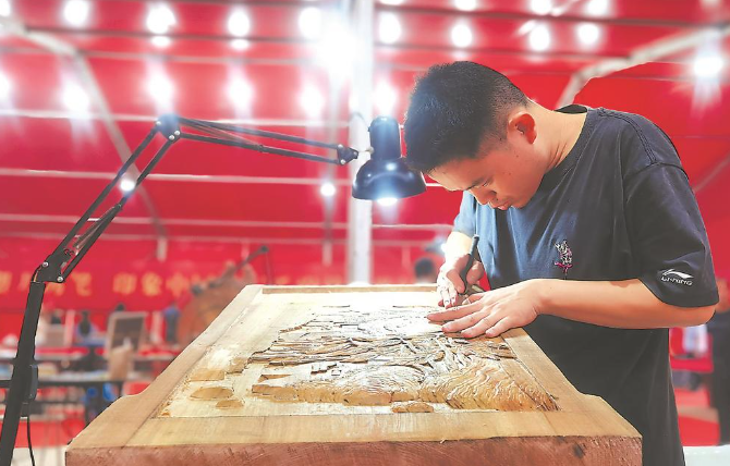 来自湖南邵阳的聋哑工匠选手罗练成在比赛中。 东南网9月27日讯(福建日报记者 林爱玲 实习生 林常青 文/图) 2024年全国轻工职业技能竞赛暨第十五届“艺鼎杯”木雕技能竞赛21日起在莆田工艺美术城举行。 本届“艺鼎杯”大赛立足弘扬工匠精神,推动以赛兴业、以文促旅,报名人数创历史新高。经个人报名、专家评审,来自全国16个省市的42名选手入围决赛。比赛内容包含木雕理论考试与现场实际操作两部分,其中理论考试成绩占30%,实际操作占70%。最终,综合成绩前3名的选手将被授予“全国轻工技术能手”荣誉称号及证书,前16%的选手则有机会获得“全国工艺美术行业技术能手”的认证。 此次活动还邀请“艺鼎杯”双冠王、重庆工艺美术大师杨恒清,台湾青年艺术家陈翊真、杨天吉与伊朗优秀艺术家等同台展演。 自2009年创办以来,“艺鼎杯”大赛已成为海峡两岸具有影响力的木雕技能品牌赛事,累计有30多名来自台湾地区的选手参赛。 此外,第十届中国泥塑造像技艺大赛同期也在莆田工艺美术城举行。该赛事是国内首个以“泥塑造像”为题材的现场大赛。 |