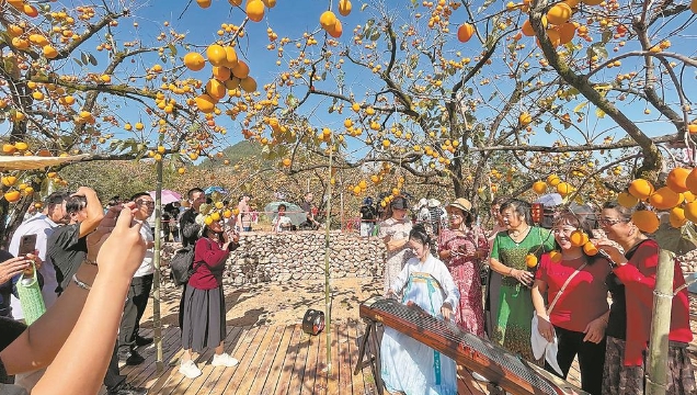 目前,全村炮弹柿年产量达450万斤,年销售2500多万元,每年接待游客约10万人次。
