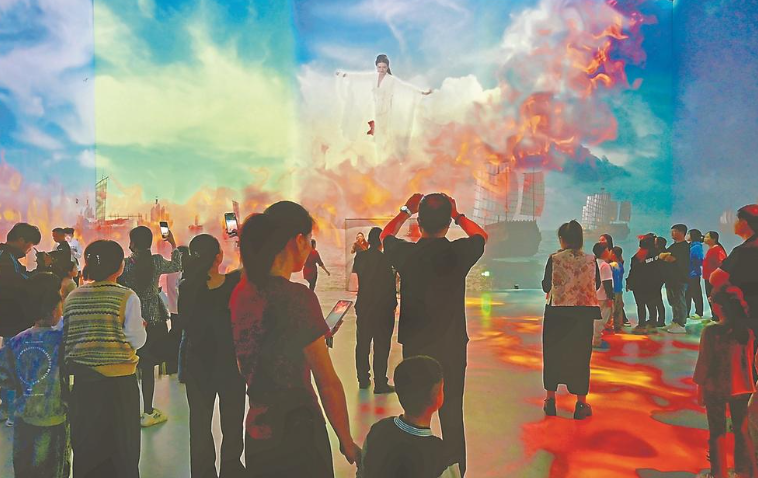 数字光影秀《首见妈祖》演出现场 东南网11月12日讯(福建日报记者 陈盛钟 通讯员 程黎婷 文/图) 10日,大型沉浸式数字光影秀《首见妈祖》在莆田湄洲妈祖祖庙天后广场大戏楼首演,为观众带来了一场传统文化与现代数字科技交相辉映的视听盛宴。 《首见妈祖》由湄洲妈祖祖庙董事会、北京中数文化科技有限公司、莆田市湄洲岛致敬文化管理有限公司联合推出。项目借助五折幕投影、ALPD激光等技术,打造一个总面积约400平方米、高10多米的立体展演厅,生动展现妈祖的传奇事迹,突显“立德、行善、大爱”的妈祖精神。展演厅可同时容纳200人观演,这也是迄今为止全球最大的妈祖主题数字交互艺术空间。 “演出融合数字光影、雷达感应、多人交互技术等,打造全球首个妈祖主题沉浸式交互体验空间。”《首见妈祖》主创团队负责人曹易介绍,演出以红丝带为纽带,串联起典籍、海难、止战、春回、丰收、传承、飞升等七大篇章。通过立体空间内的交互感应技术,突破传统展示技术的局限,引领观众从“看”一段历史走向“进入”一个故事,体验一场前所未有的妈祖文化之旅。 值得一提的是,《首见妈祖》还利用数字科技打造全球最大裸眼3D数字妈祖,呈现出立于浪花彩云之上、发丝衣袂随风起舞、丝带缠绕妈祖金身的视觉效果,在感受到妈祖庄严神圣形象的同时,更能体会到数字艺术带来的震撼与美感。 “每一幕都让人心潮澎湃,让人仿佛置身于妈祖的传奇世界!”游客贾先生说,演出将妈祖文化最精华的部分通过高科技形式展现出来,让人仿佛穿越时空,感受到“活”起来的妈祖文化散发出的独特魅力。 今年以来,湄洲岛国家旅游度假区依托当地文化、生态、旅游资源优势,探索“旅游+演艺”新模式,先后推出《缘起湄洲》《印象·妈祖》《首见妈祖》等沉浸式文旅项目,解锁文旅新玩法,不断丰富文旅新业态、新模式、新场景,激发文旅市场消费新活力,推动文旅产业高质量融合发展。今年前三季度,全岛累计接待入岛游客216.55万人次,同比增长9.15%。 |