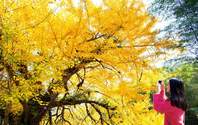 政和县铁山镇大岭村600年树龄的银杏王下黄叶遍地,游客在银杏树下赏银杏、拍照留影。余长青/摄 (资料图) 大岭村300多株苍老的古银杏树分散在大岭头、枫林坑、半岭、牛栏子、北山、陈山、溪边等9个自然村。每年11月下旬到12月中旬,银杏满树金黄,成为当地一道亮丽的风景,吸引各地游客前来观赏。 此外,南平还有多处观赏地点,如顺昌县大干镇银杏村、延平区南山镇后溪村、建瓯迪口镇…… 宁德·蕉城龙湫寺